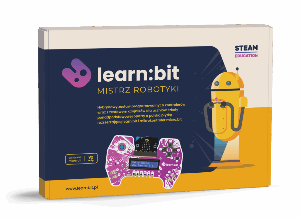 Zestawy learn:bit stawiają na naukę w podejściu holistycznym, łącząc ze sobą tajniki wielu dziedzin. Nie inaczej jest w przypadku learn:bit – mistrz robotyki. To hybrydowy pakiet przybliżający uczniom podstawowe elementy inżynierii mechanicznej, elektrotechniki, automatyki i informatyki. Dzięki połączeniu interaktywnego kursu, mikrokontrolera micro:bit oraz polskiej płytki rozszerzającej, zestaw stanowi świetny wstęp do przygody w świecie robotyki.