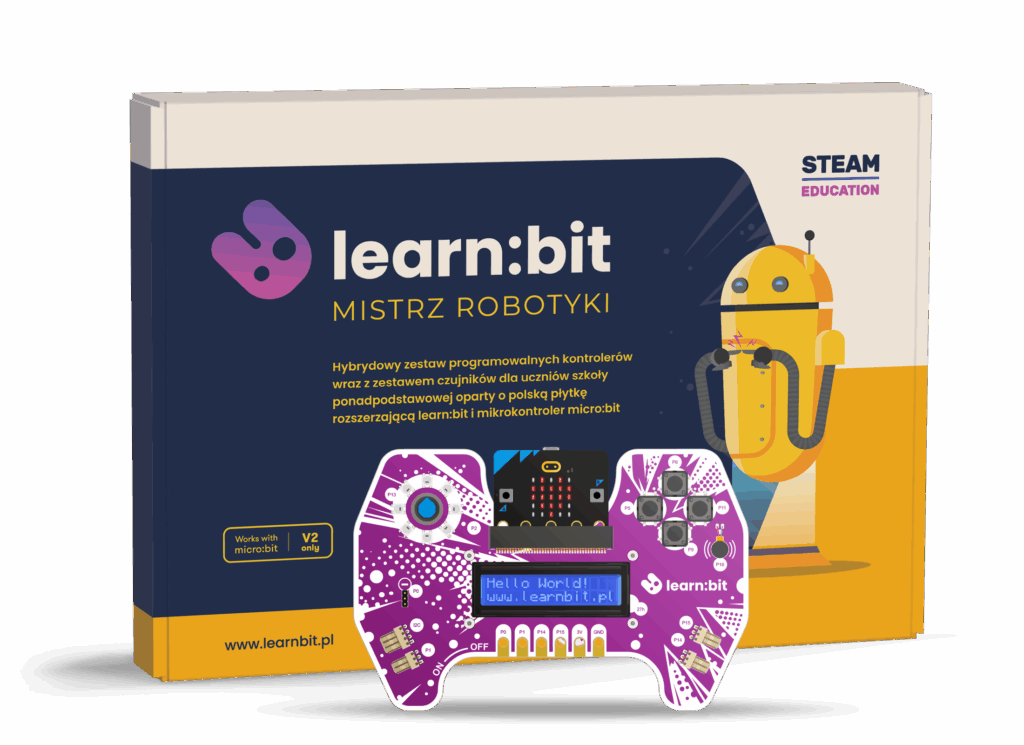 Zestawy learn:bit stawiają na naukę w podejściu holistycznym, łącząc ze sobą tajniki wielu dziedzin. Nie inaczej jest w przypadku learn:bit – mistrz robotyki. To hybrydowy pakiet przybliżający uczniom podstawowe elementy inżynierii mechanicznej, elektrotechniki, automatyki i informatyki. Dzięki połączeniu interaktywnego kursu, mikrokontrolera micro:bit oraz polskiej płytki rozszerzającej, zestaw stanowi świetny wstęp do przygody w świecie robotyki.